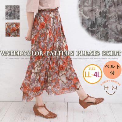 ベルト付 水彩柄 プリント 消しプリーツ スカート | 大きいサイズの通販ならハッピーマリリンのレビュー