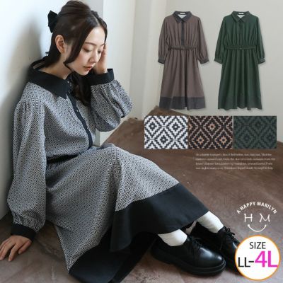起毛ツイル 幾何学 プリント クレリック ベルト付き ワンピース | 大きいサイズの通販ならハッピーマリリンのレビュー