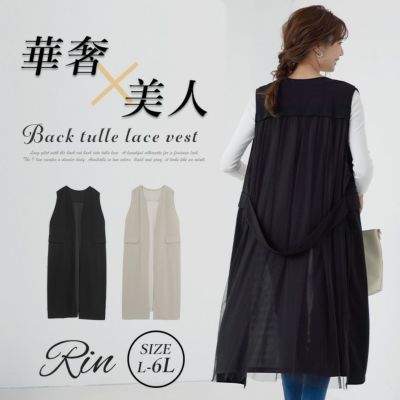 これからの季節に体型カバーする為に購入しました。後ろのチュールにベルト風もついて、上品で大人っぽいジレ。着回しがきくので重宝しそうです。