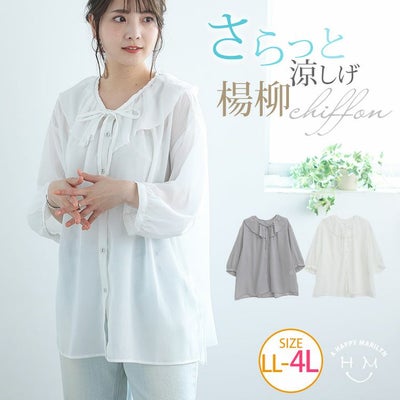 七分袖 前開き フリルカラー ブラウス | 大きいサイズの通販ならハッピーマリリンのレビュー
