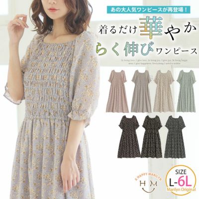 リニューアル!! 柄が選べる シャーリング使い ぽっちゃりさんに似合う ワンピース | 大きいサイズの通販ならハッピーマリリンのレビュー
