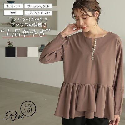Rin 上品に華やいで体型カバー パールボタン ペプラム カットジョーゼット ブラウス フレア チュニック カットソー オフィス 大人 ビジネス ママ | 大きいサイズの通販ならハッピーマリリンのレビュー