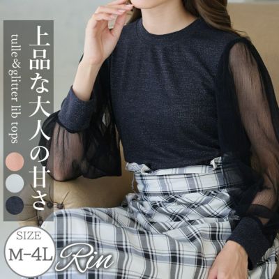 Rin 大人の上品華やぎ ラメリブ袖 チュール切替トップス | 大きいサイズの通販ならハッピーマリリンのレビュー