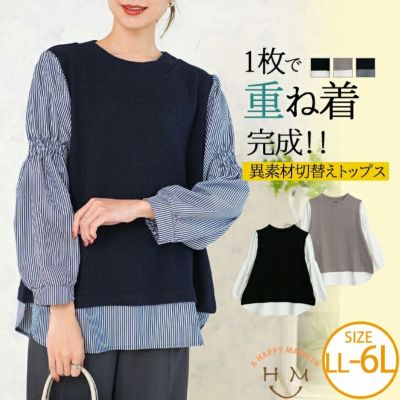 袖シャーリング 異素材切替え プルオーバー | 大きいサイズの通販ならハッピーマリリンのレビュー