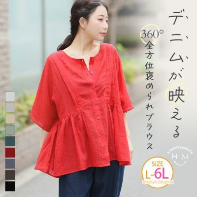 さらり涼し気 デニムが映える TCガーゼ 華奢魅せ タック ギャザー シャツ ブラウス | 大きいサイズの通販ならハッピーマリリンのレビュー