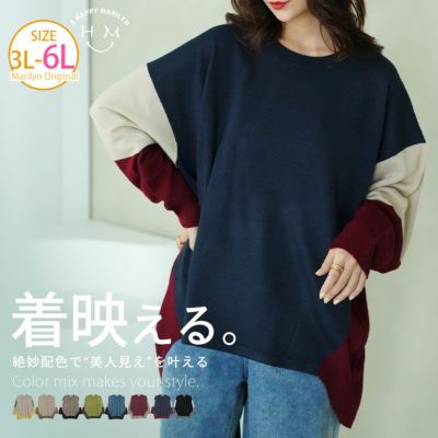 厚すぎないのが着やすい!! 配色デザイン 着映え ニット | 大きいサイズの通販ならハッピーマリリンのレビュー