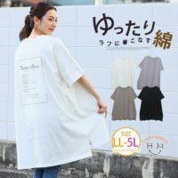 綿100% 度詰め天竺 バックプリント ビッグシルエット LONG Tシャツ | 大きいサイズの通販ならハッピーマリリン