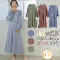 形が可愛いくて私の好みなのでサイズが少し上の4Lしかなったけど即買いしました。ゆったりした作りで楽に着られるのですが、やはり少し大きいせいか上半身が決まらなくしっくりしません。胸元が元々広く開いたタイプなのでやはり下のサイズを買うべきでした。ウエストはゴムで楽ですがベルトが付いてれば良いなと思いました。後は生地のせいかシワが目立ちます。