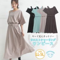 キレイ 見え カットソー ワンショルダー ウエスト ベルト ワンピース | 大きいサイズの通販ならハッピーマリリン
