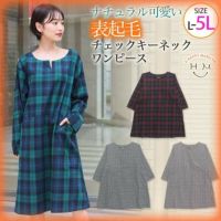 表起毛 チェック キーネック ワンピース | 大きいサイズの通販ならハッピーマリリン