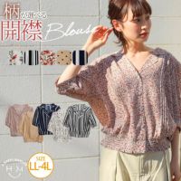 ストライプ・ドット・花柄 柄が選べる パフスリーブピンタック使い開襟半袖ブラウス【メール便可1】 | 大きいサイズの通販ならハッピーマリリン