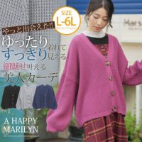 L-4Lパープルを購入しました。 色は写真より若干暗めな印象です。 ワッフル編みとボタンデザインが素敵なのですが、袖や胴にかなりゆとりがあり横に広がるのでもったりしたシルエットになってしまい残念です。 少しでもスッキリ見せたい人には向きません。 -