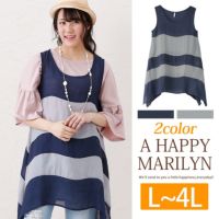 ボーダー配色切替 ノースリーブ ワンピース | 大きいサイズの通販ならハッピーマリリン