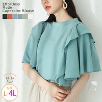 フリルブラウスが欲しくて購入!正面はかなり可愛いですが、後ろから見ると二の腕が隠れきれてなくて残念…。前のフリルが長め、後ろが短めです。ダブルフリルの存在感強め、丈感も長めです! -
