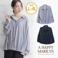 スキッパー タケノコタック ストライプ 長袖 ブラウス | 大きいサイズの通販ならハッピーマリリン