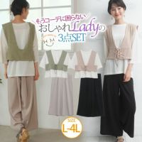 3点SET 楽ちん!!簡単コーデのスタイル美人 リブビスチェセットアップ Tシャツ パンツ ワイドパンツ | 大きいサイズの通販ならハッピーマリリン