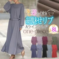 ゆったりなのに細魅せ! き楽っくす リブベルテッド Aライン フレア ロングワンピース | 大きいサイズの通販ならハッピーマリリン