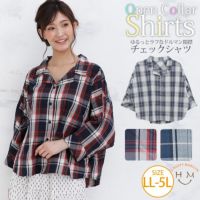 七分袖 ドルマン 開襟 チェック シャツ【メール便可1】 | 大きいサイズの通販ならハッピーマリリン