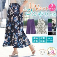 身長:160 購入サイズ:4L 着用感:素材の重さでズリ落ちてきやすく、好みの丈(ポジション)を維持しにくい ストレッチ感:ふつう カラーについて:緑の小花柄/パンツtype 可愛さ◎ 夏用△ 色は画像より落ち着いたグリーンに見えますが、小花の柄がグリーンに合っていて可愛いです。 生地が想像より重く、動いていると冷感よりも、こもった汗のベタつきを感じるので、個人的に綿のインナー必須です。 重さでズリ落ちる分は、サスペンダーでも使ってみような。 パンツtypeのデザインは、お腹・尻・太もも周りが太いとパンツのすそが広がりにくいので、ずんぐり体型に見えやすいかもです。デカ尻&短足&二の腕太子なのでトップスとのバランスに悩みます。 -