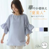 Rin 袖タックパールブラウス オフィス 大人 着やせ 体型カバー ビジネス 通勤 ママ | 大きいサイズの通販ならハッピーマリリン