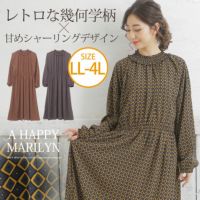 デシン 幾何学柄 襟シャーリング 長袖 ワンピース | 大きいサイズの通販ならハッピーマリリン