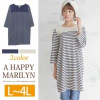 ヨーク切替 七分袖 ボーダー柄 チュニックワンピース【メール便可1】 | 大きいサイズの通販ならハッピーマリリン