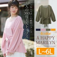袖フリル カットジョーゼット リボンベルト付き クルーネック ブラウス | 大きいサイズの通販ならハッピーマリリン