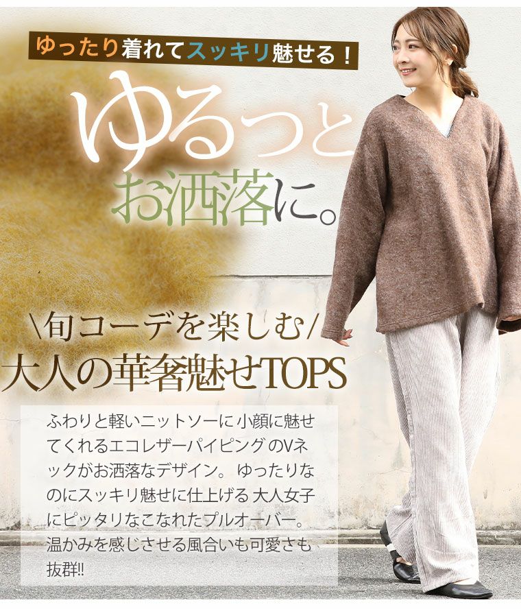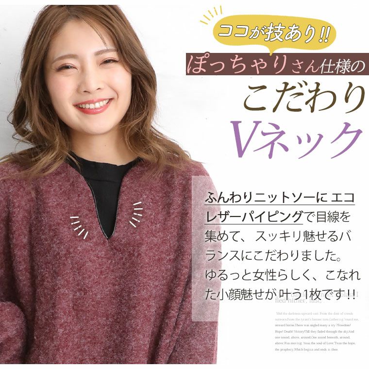 他の画像を見る オリジナル トップス LL 3L 4L 5L 6L 冬 冬物 冬服 ぽっちゃり ゆったり お腹 二の腕カバー 腰周り かわいい おしゃれ カジュアル ナチュラル ふんわりニットソー エコレザー パイピング Vネック プルオーバー | 大きいサイズの通販ならハッピーマリリン 価格 ¥ 3,290 税込 3.81 お気に入りに登録する