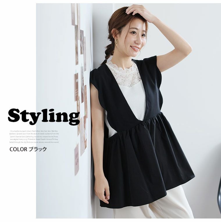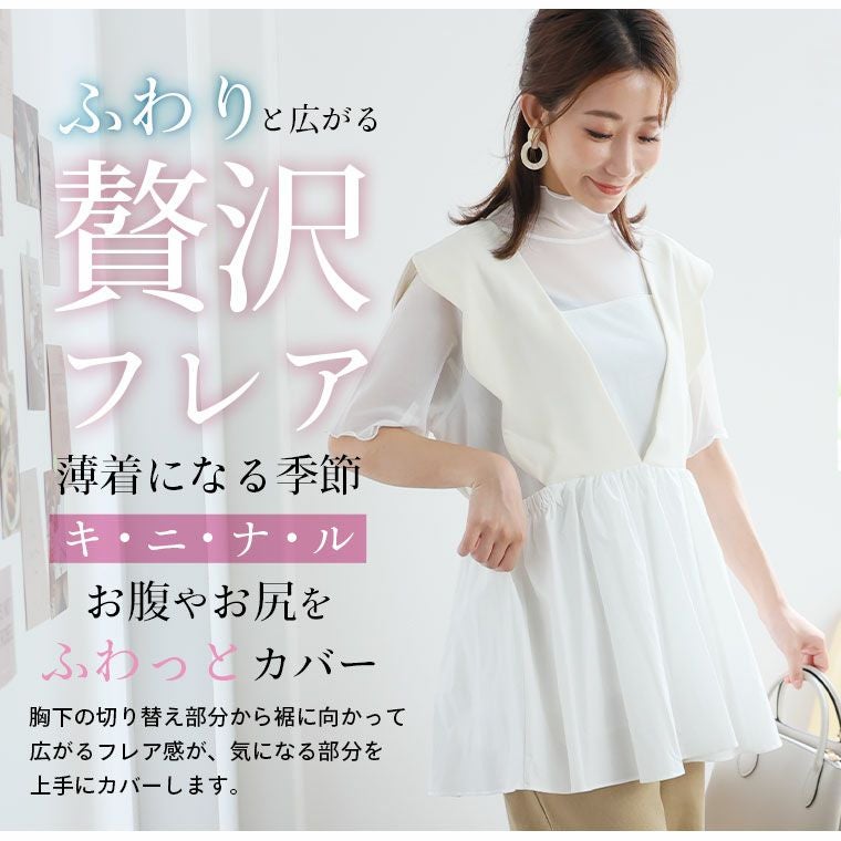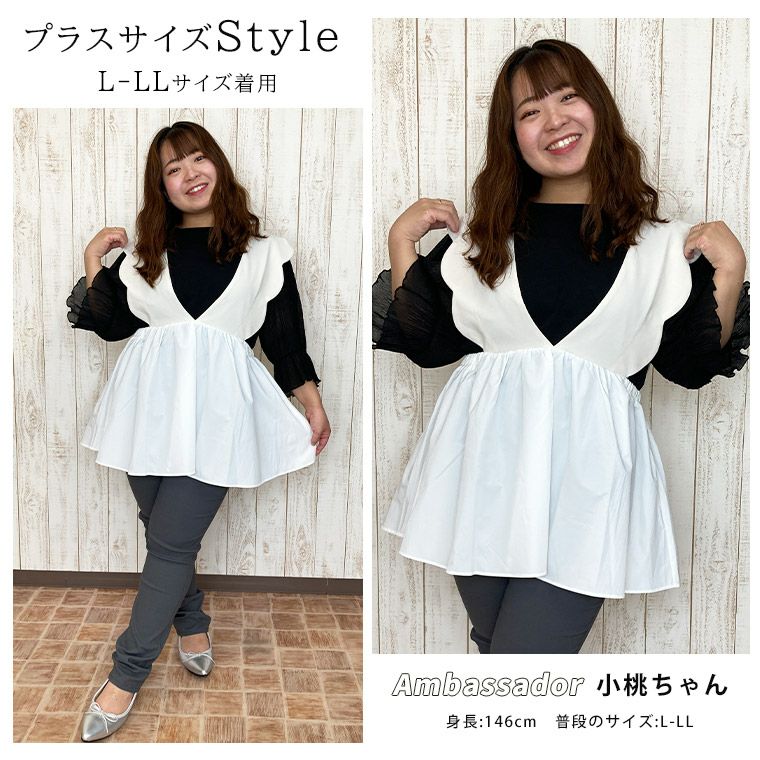他の画像を見る トップス ビスチェ LL 3L 4L 5L 6L 夏 夏物 夏服 夏用 ぽっちゃり ゆったり お腹 太もも 肩着やせ レイヤード プラスサイズ 【着やせアイテム】 肩フリル カットジョーゼット ペプラム ベスト | 大きいサイズの通販ならハッピーマリリン 価格 ¥ 3,990 税込 3.00 お気に入りに登録する