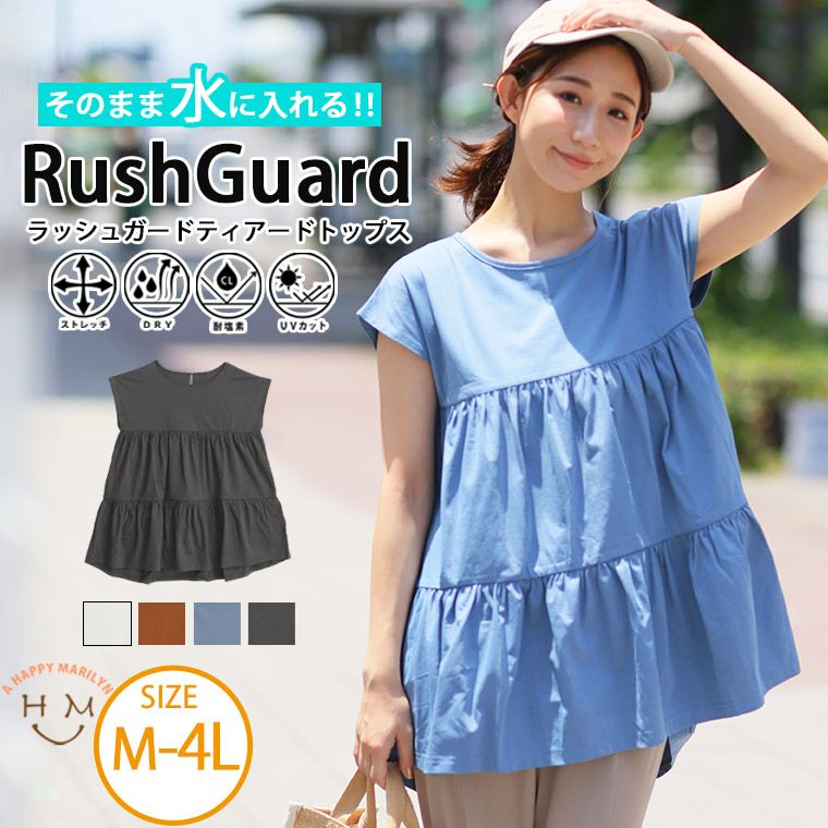 他の画像を見る オリジナル ラッシュガード UVカット 水陸両用 UV対策 吸水速乾 耐塩素 ストレッチ カットソー LL 3L 4L 夏 夏物 夏服 夏用お尻 腰周り 【優秀機能!】 街でもレジャーでもOK!ラッシュガードティアードトップス | 大きいサイズの通販ならハッピーマリリン 価格 ¥ 3,490 税込 5.00 お気に入りに登録する