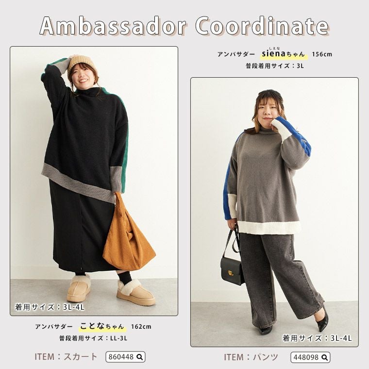 他の画像を見る セーター トップス プルオーバー 3L 4L 5L 6L 長袖 春 春物 春服 ぽっちゃり ゆったり プラスサイズ かわいい おしゃれ 二の腕カバー 厚すぎないもっちり感が着やすい!! 配色 ライン袖 デザイン ニット | 大きいサイズの通販ならハッピーマリリン 価格 ¥ 3,990 税込 4.33 お気に入りに登録する