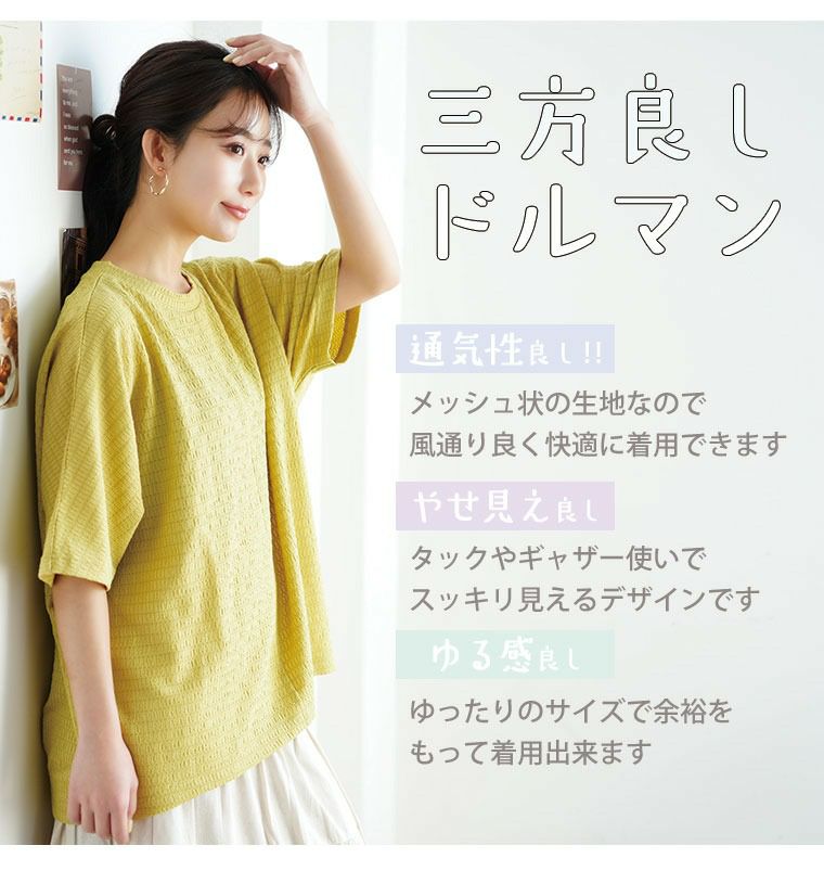 他の画像を見る オリジナル カットソー LL 3L 4L 5L 6L 夏 ぽっちゃり ゆったり お腹 半袖 胸周り 二の腕カバー 腰周り プラスサイズ 【クシュクシュしわ加工】 ヒップをカバー 前後差丈プルオーバー | 大きいサイズの通販ならハッピーマリリン 価格 ¥ 2,790 税込 3.33 お気に入りに登録する