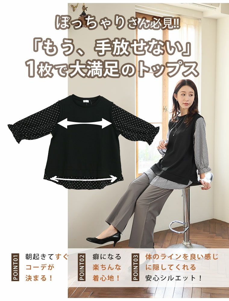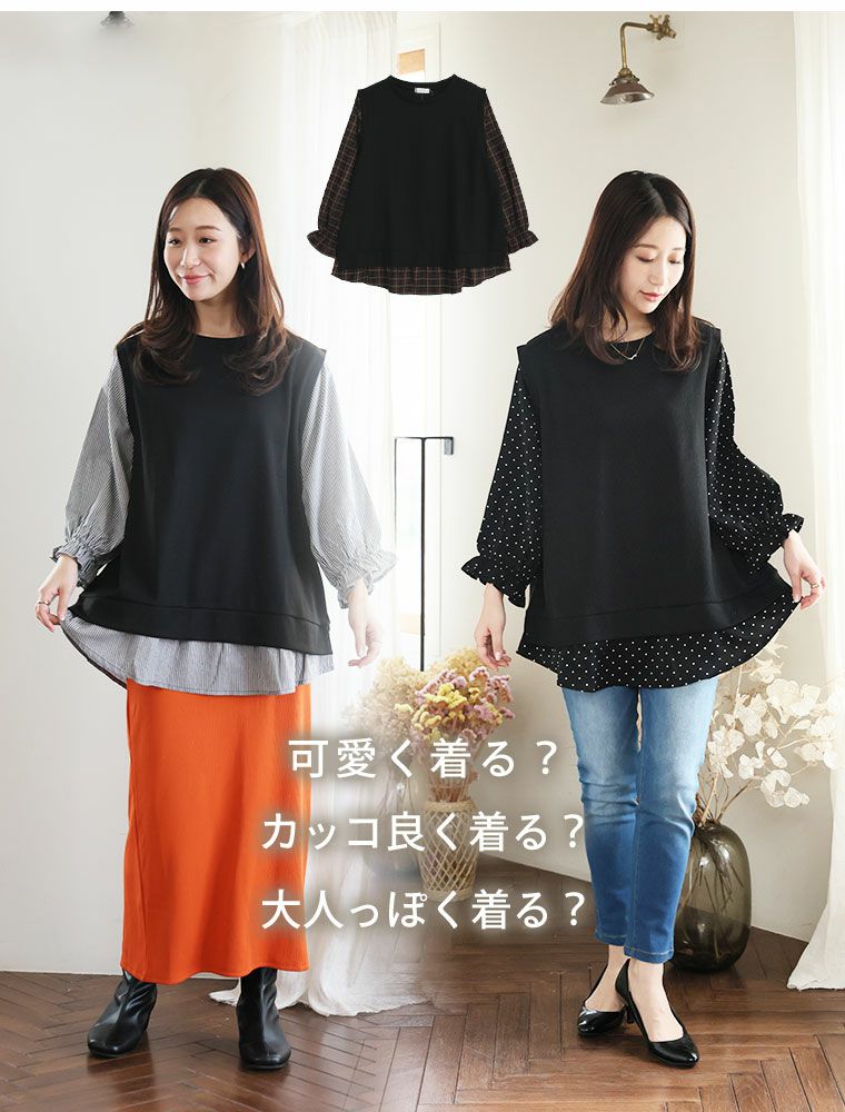 他の画像を見る カットソー プルオーバー LL 3L 4L 5L 6L 七分袖 春 春物 春服 ぽっちゃり ゆったり 重ね着風 二の腕カバー 新色追加!! 華奢魅せ×お洒落 さっと着てパッと可愛い 1枚で完成 ドッキングトップス | 大きいサイズの通販ならハッピーマリリン HIT100 価格 ¥ 2,490 税込 4.35 お気に入りに登録する