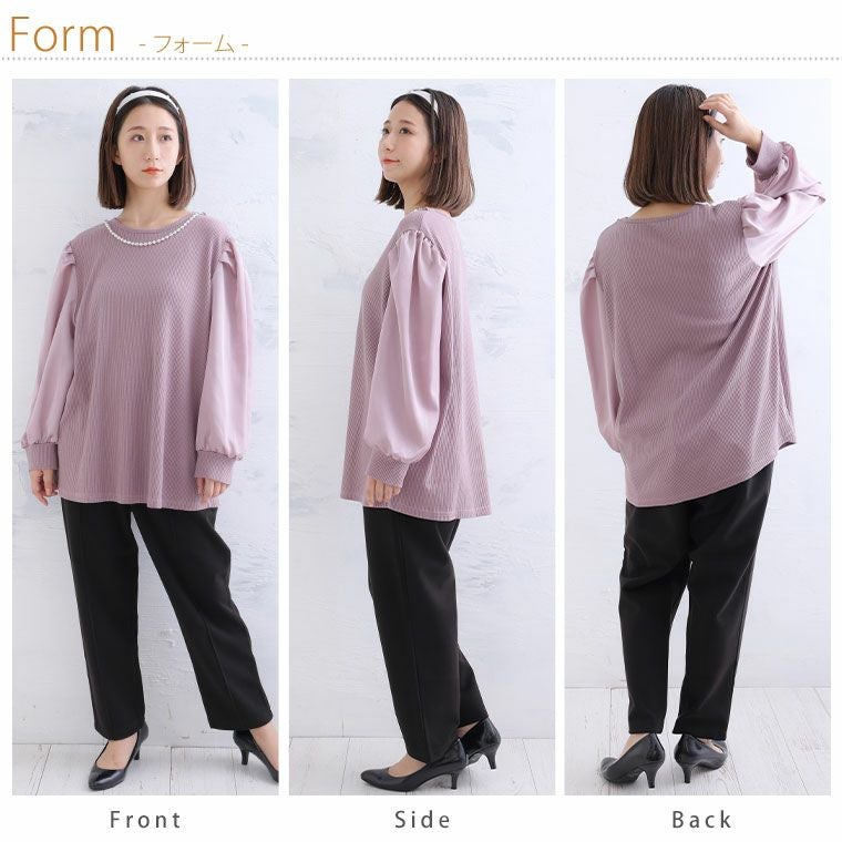 他の画像を見る オリジナル カットソー プルオーバー LL 3L 4L 5L 6L 秋 秋物 秋冬 ぽっちゃり ゆったり リン Rin 大人が恋する 華やぎ ボリューム袖 パールネックレス付き リブトップス オフィス 大人 ビジネス 通勤 ママ | 大きいサイズの通販ならハッピーマリリン 価格 ¥ 2,990 税込 5.00 お気に入りに登録する