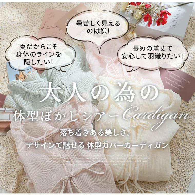 他の画像を見る カーデガン カーデ コーディガン 羽織り LL 3L 4L 5L 6L 夏 夏物 夏服 夏用 ぽっちゃり ゆったり マジョリカ フリル プラスサイズ KAREN トリプルリボン シアーカーディガン | 大きいサイズの通販ならハッピーマリリン 価格 ¥ 3,190 税込 4.47 お気に入りに登録する
