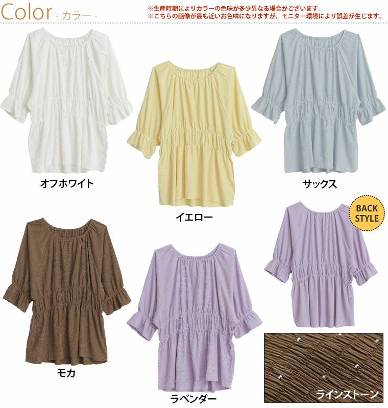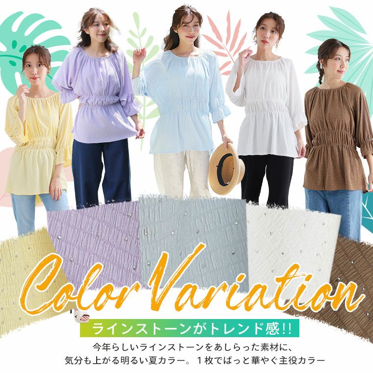 他の画像を見る オリジナル ブラウス シャツ トップス チュニック ラインストーン LL 3L 4L 5L 6L 夏 夏物 夏服 夏用 ぽっちゃり 嬉しいを叶える! さらっと&華やか!! 夏の主役! カット楊柳シャーリング ブラウス チュニック【着やせアイテム】 | 大きいサイズの通販ならハッピーマリリン 価格 ¥ 3,990 税込 4.00 お気に入りに登録する