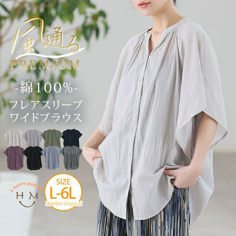 他の画像を見る シャツ トップス LL 3L 4L 5L 6L 春 春物 春服 夏 夏物 夏服 ぽっちゃり ゆったり プラスサイズ 二の腕カバー カジュアル 【新作◆3月13日販売】 【風通るプレミアム】 フレアスリーブ ワイド ブラウス | 大きいサイズの通販ならハッピーマリリン NEW HIT100 価格 ¥ 2,890 税込 4.50 お気に入りに登録する
