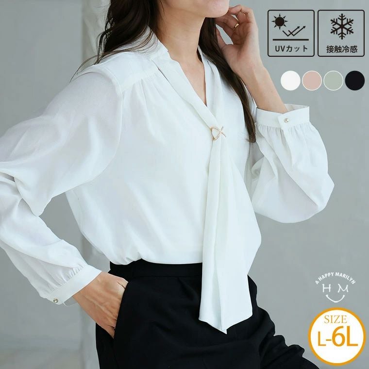 他の画像を見る シャツ トップス LL 3L 4L 5L 6L 長袖 春 春物 春服 ぽっちゃり ゆったり プラスサイズ イージーケア UVカット ウォッシャブル 接触冷感 オフィス 二の腕カバー アレンジ可能 スカーフタイ ブラウス | 大きいサイズの通販ならハッピーマリリン 価格 ¥ 4,490 税込 お気に入りに登録する