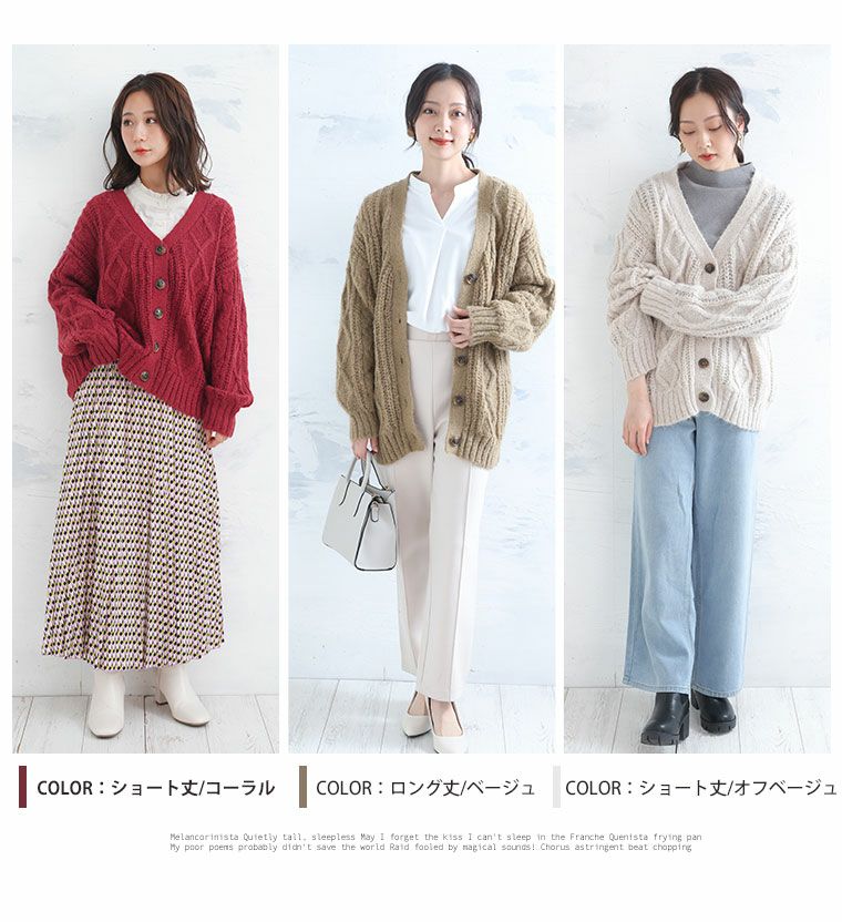 他の画像を見る オリジナル トップス カーデ LL 3L 4L 5L 6L 冬 お腹 胸周り 二の腕カバー お尻 腰周り 長袖 軽くて暖か 選べる身長別 エアリーケーブル ウーリッシュ ニットカーデ | 大きいサイズの通販ならハッピーマリリン 小柄さん丈有 在庫特価 定価 ¥ 3,790 のところ 価格 ¥ 3,000 税込 3.54 お気に入りに登録する