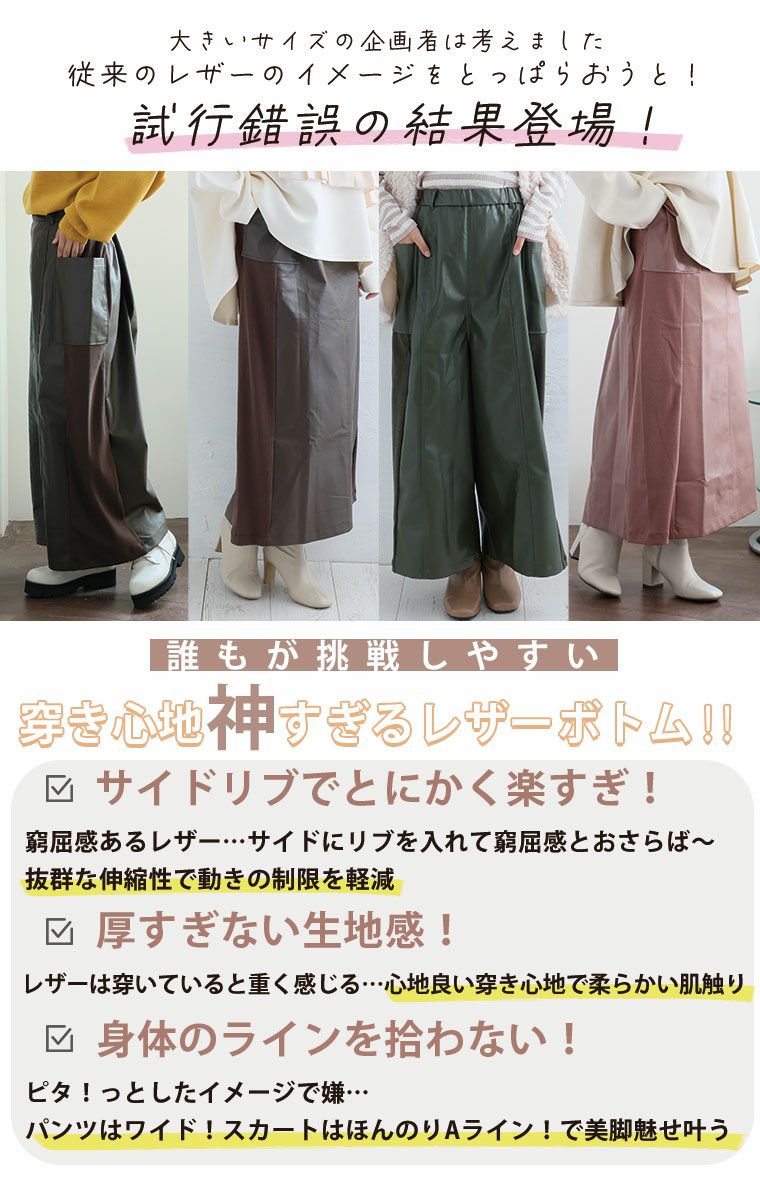 他の画像を見る オリジナル LL 3L 4L 5L 6L 秋 冬 お腹 太もも お尻 腰周り フェイクレザー 春 大きいサイズの企画者が作りました! 2型から選べる 脇のびーる!! 合皮スカート・パンツ | 大きいサイズの通販ならハッピーマリリン 価格 ¥ 3,990 税込 4.36 お気に入りに登録する
