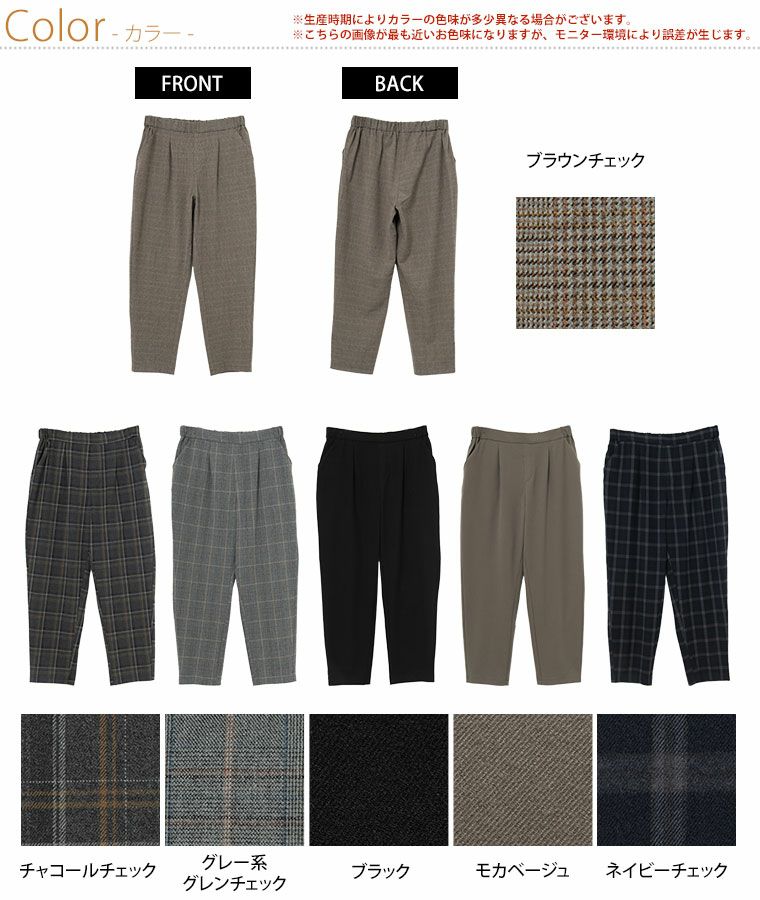 他の画像を見る ボトムス LL 3L 4L 5L 6L 冬 お腹 太もも お尻 腰周り Rin あったかいのにスッキリ綺麗 TR両面起毛 ストレッチ テーパードパンツ チェック 無地 オフィス 大人 ビジネス 通勤 ママ 美脚 楽ちん【ストレッチ】【ウェストゴム】 | 大きいサイズの通販ならハッピーマリリン 在庫特価 定価 ¥ 3,490 のところ 価格 ¥ 2,500 税込 3.40 お気に入りに登録する