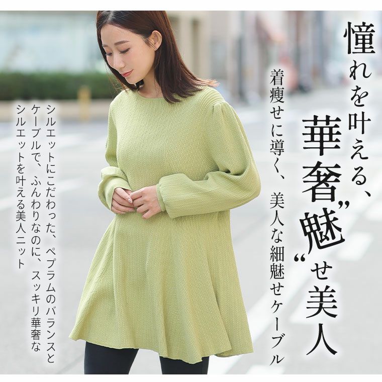 他の画像を見る オリジナル セーター トップス プルオーバー LL 3L 4L 5L 6L 長袖 冬 冬物 冬服 嬉しい! 体型カバーと細魅叶える! 着痩せ美人なケーブル もっちり リブ ペプラム ニット チュニック | 大きいサイズの通販ならハッピーマリリン 在庫特価 定価 ¥ 2,990 のところ 価格 ¥ 2,000 税込 3.71 お気に入りに登録する