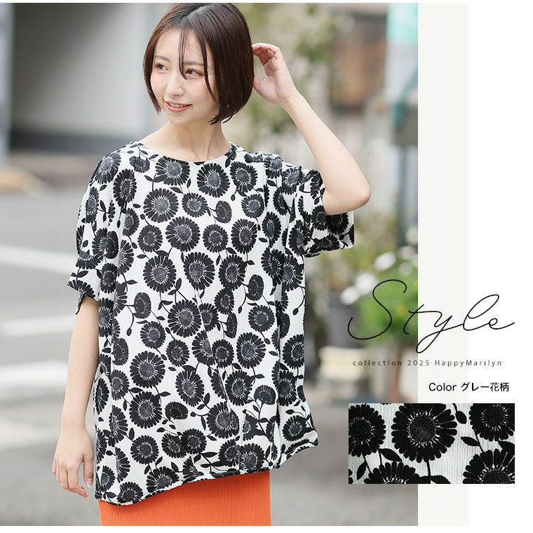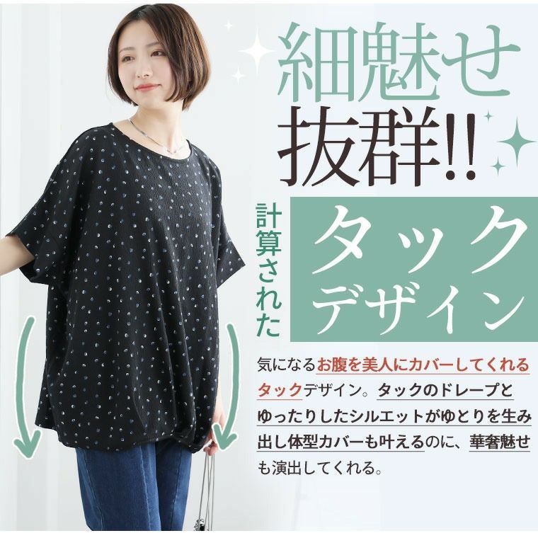 他の画像を見る プルオーバー 楊柳 花柄 ドット LL 3L 4L 5L 6L 半袖 五分袖 夏 夏物 夏服 夏用 お腹 お尻 二の腕カバー さらりとお洒落! ゆったりなのに着痩せる! ネックが選べる フロントタック ドルマン カットソー | 大きいサイズの通販ならハッピーマリリン 価格 ¥ 2,490 税込 4.21 お気に入りに登録する
