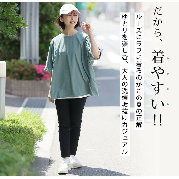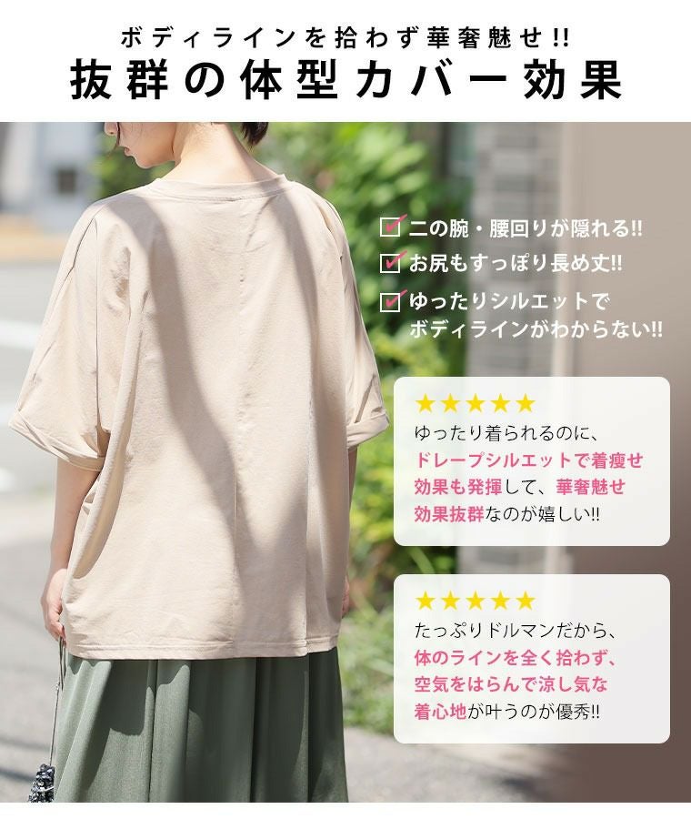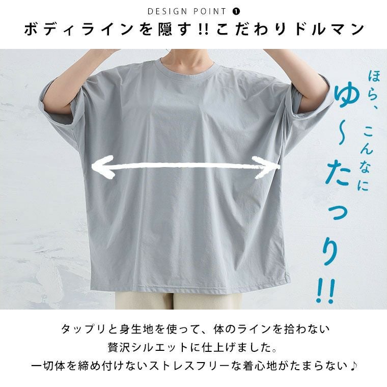 他の画像を見る カットソー LL 3L 4L 5L 6L 半袖 夏 夏物 夏服 夏用 洗濯速乾 UV 二の腕カバー お尻 カラッと乾いてさらっと着られる 体型カバーが得意な 接触冷感 カチオン天竺 ベーシック コットン ドルマン Tシャツ | 大きいサイズの通販ならハッピーマリリン 価格 ¥ 1,690 税込 4.50 お気に入りに登録する