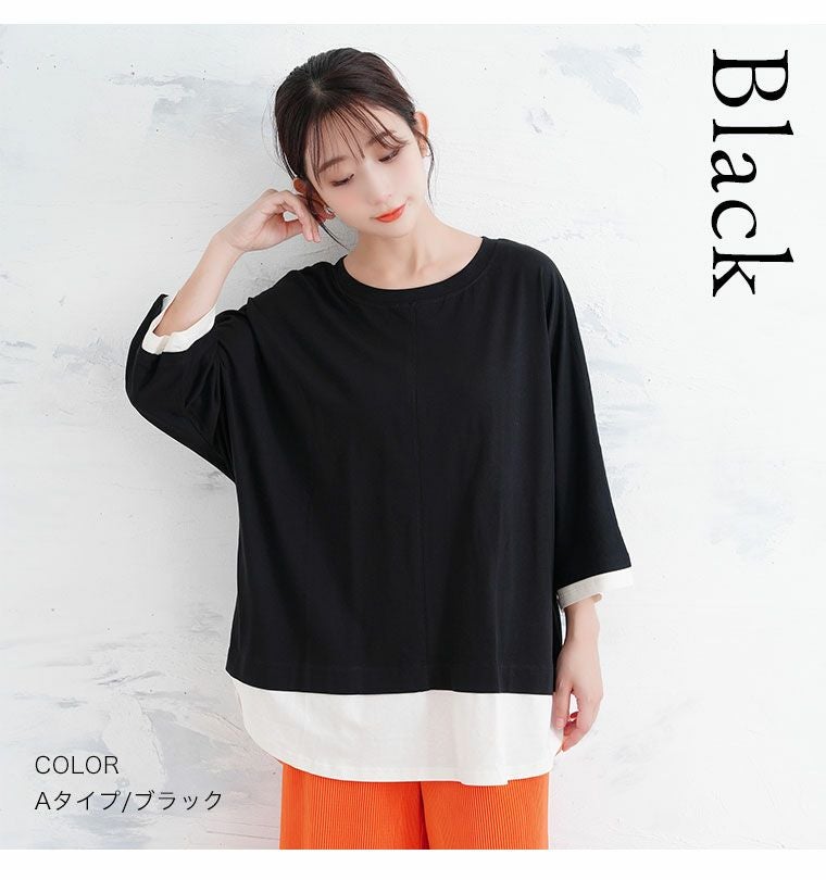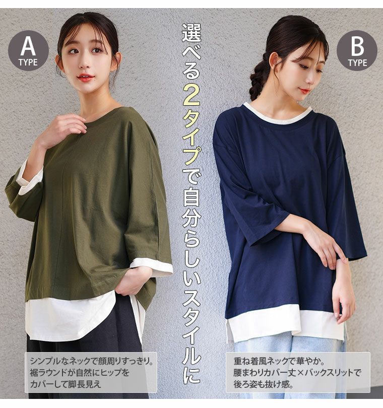 他の画像を見る LL 3L 4L 5L 6L 秋 秋物 秋服 冬 冬物 冬服 ぽっちゃり ゆったり プラスサイズ お腹 お尻 春 綿100% 残暑はオシャレ&涼しく決める! 2typeから選べる レイヤード風 カットソー 七分袖 Tシャツ | 大きいサイズの通販ならハッピーマリリン HIT100 価格 ¥ 1,980 税込 4.25 お気に入りに登録する