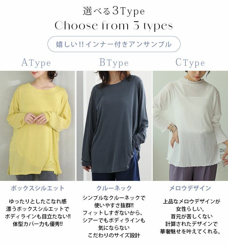 他の画像を見る トップス LL 3L 4L 5L 6L 7L 8L 長袖 春 秋 秋物 秋服 冬 冬物 冬服 お腹 お尻 レイヤード 丁度良い透け感 選べる3シルエット 欲しかった 透けすぎない シアー トップス & タンク アンサンブル | 大きいサイズの通販ならハッピーマリリン HIT100 価格 ¥ 2,190 税込 4.38 お気に入りに登録する