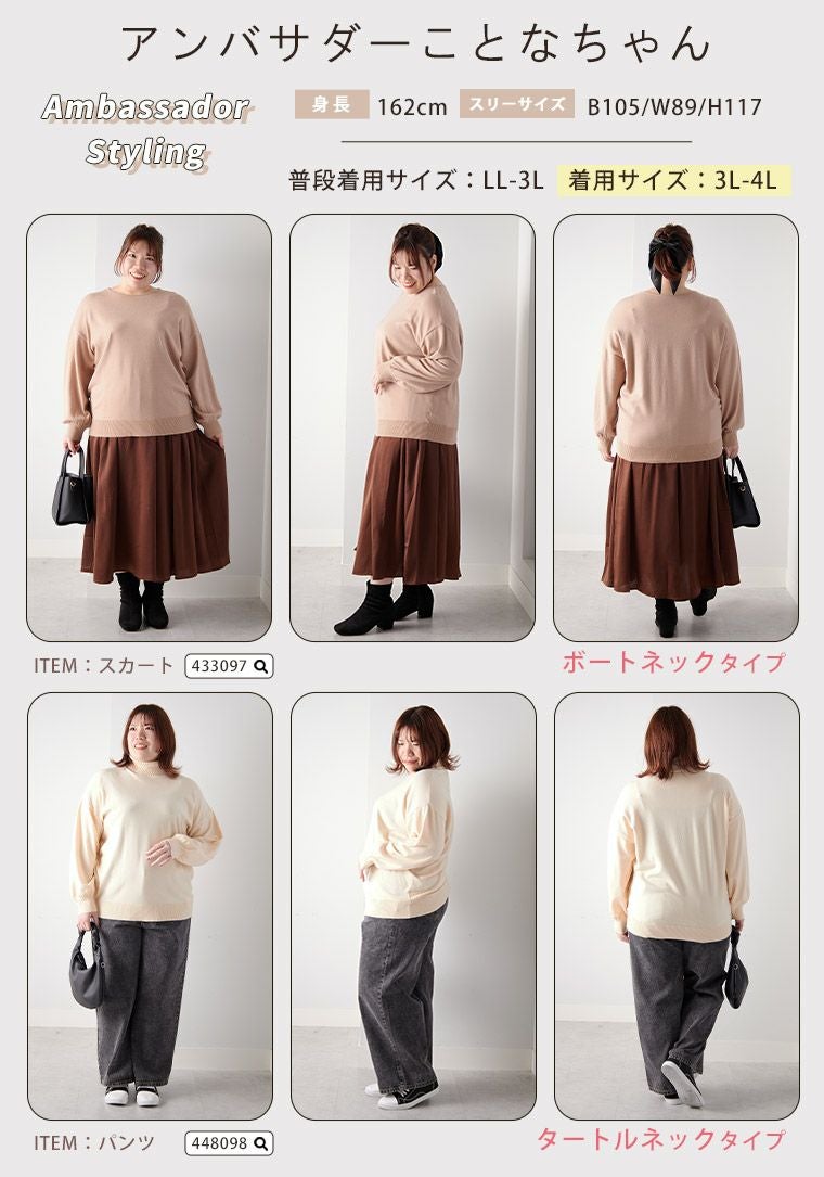 他の画像を見る LL 3L 4L 5L 6L 7L 8L 長袖 秋 秋服 冬 冬服 お腹 お尻 大きいサイズの企画者が作りました。 肌見えすぎない ボートネック と 首くるしくない タートル から選べる もっちり ニットトップス | 大きいサイズの通販ならハッピーマリリン 価格 ¥ 2,490 税込 4.43 お気に入りに登録する