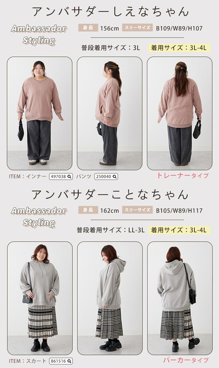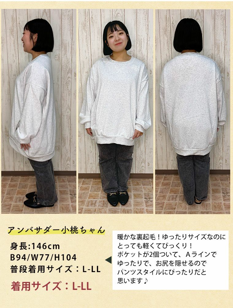 他の画像を見る スウェット LL 3L 4L 5L 6L 7L 8L 長袖 秋 秋物 秋服 冬 冬物 冬服 ゆったり 毛玉防止 お腹 お尻 ハピぽか裏起毛 2デザインから選べる ゆったりトレーナー・パーカー 毛玉になりにくい | 大きいサイズの通販ならハッピーマリリン 価格 ¥ 1,980 税込 3.97 お気に入りに登録する
