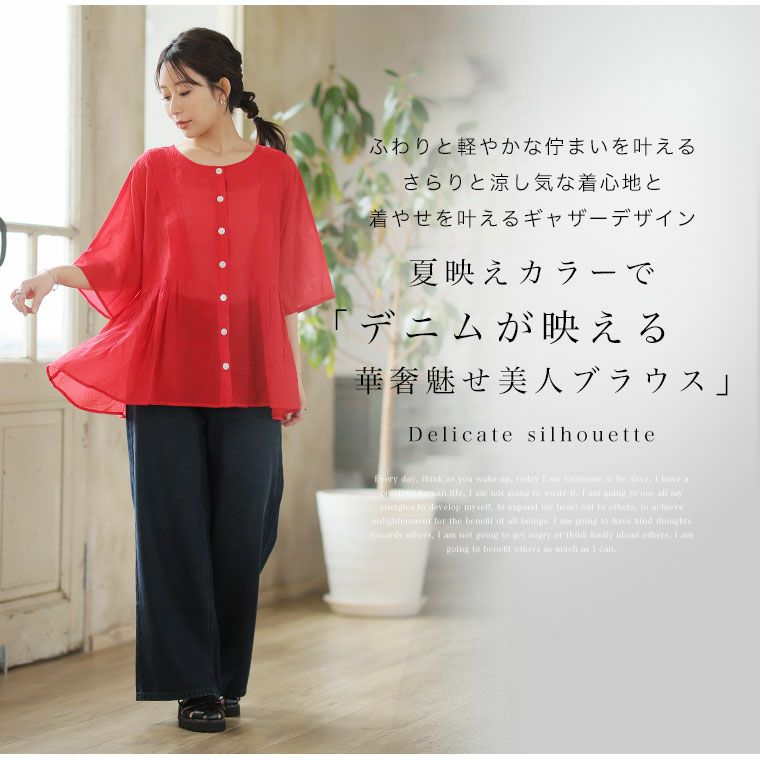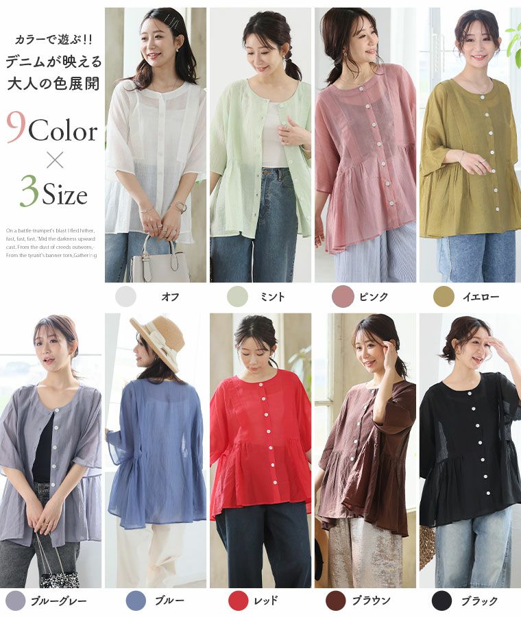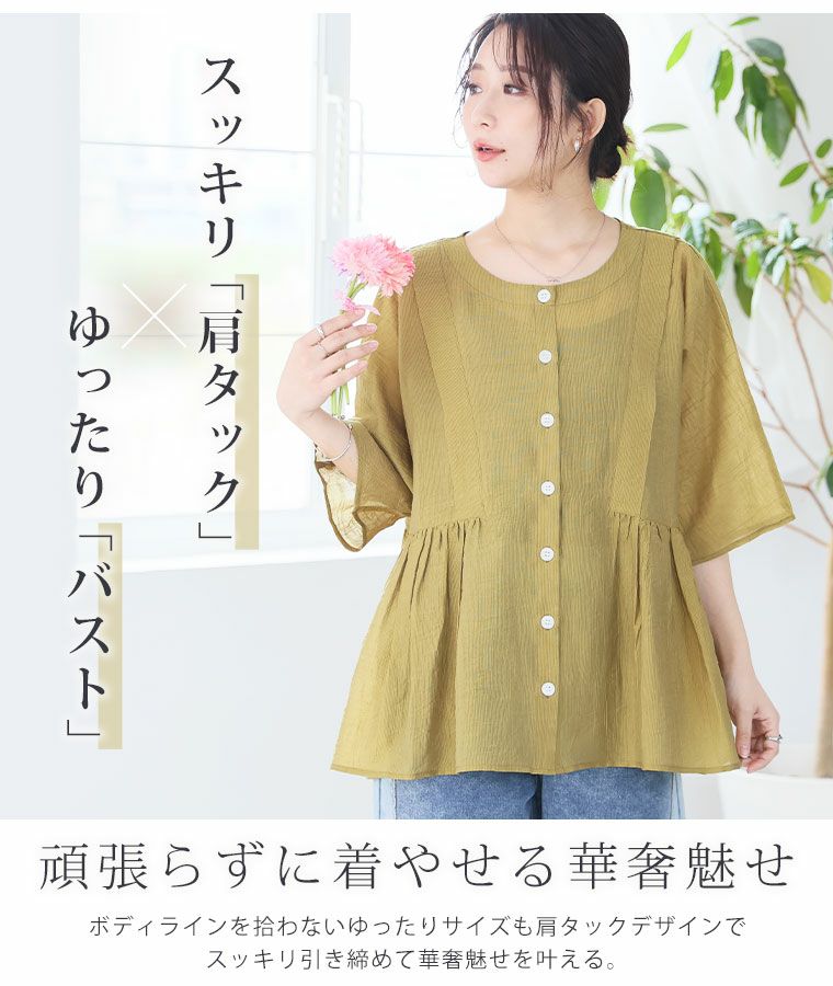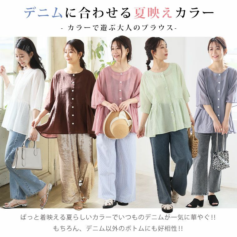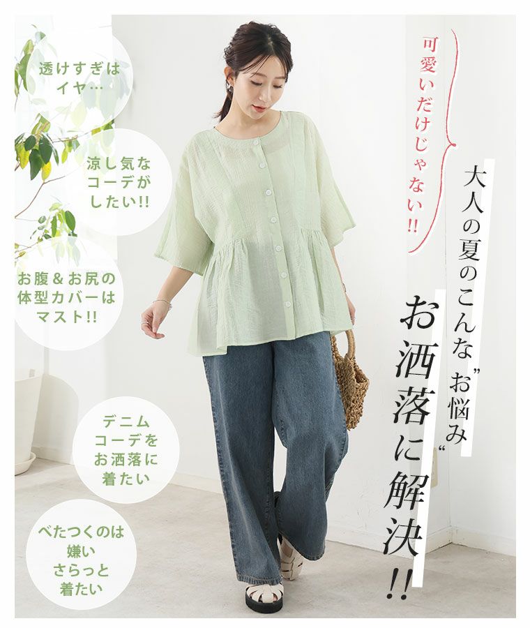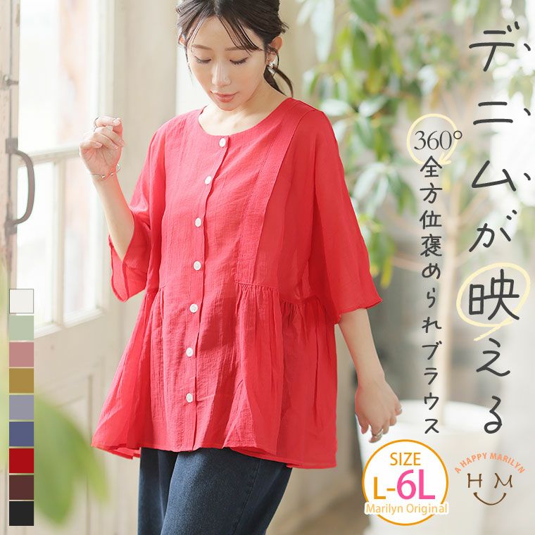 他の画像を見る トップス LL 3L 4L 5L 6L 夏 夏物 夏服 夏用 ぽっちゃり ゆったり プラスサイズ お腹 胸周り お尻 【新作◆3月25日販売】 さらり涼し気 デニムが映える 楊柳シアー 華奢魅せ タックギャザー シャツ ブラウス | 大きいサイズの通販ならハッピーマリリン NEW 価格 ¥ 2,990 税込 お気に入りに登録する