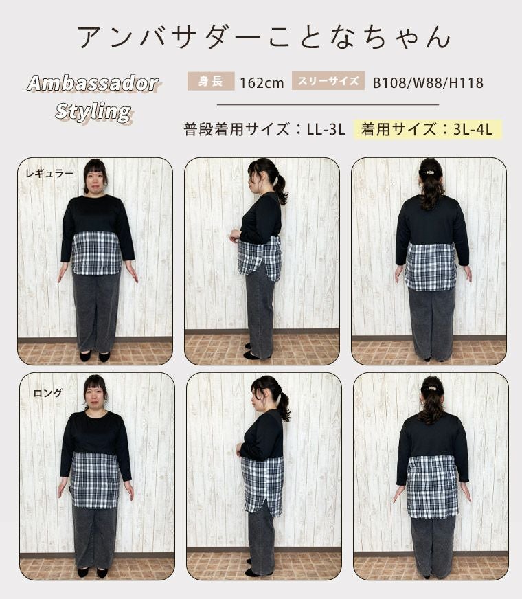 他の画像を見る オリジナル カットソー プルオーバー LL 3L 4L 5L 6L 冬 ぽっちゃり ゆったり お腹 お尻 七分袖 選べる 重ね着 レイヤード 温活 ★お洒落×体型カバーを叶える! 見せ裾 あったか 裏起毛インナー | 大きいサイズの通販ならハッピーマリリン 価格 ¥ 2,190 税込 3.20 お気に入りに登録する